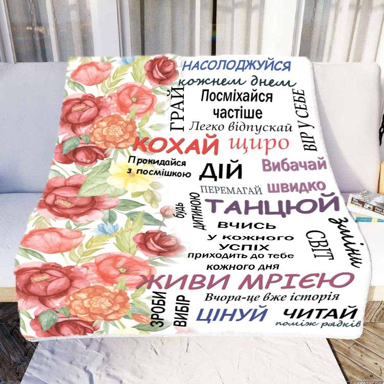 Плед 3D з побажаннями з яскравим друком стане чудовим подарунком близькій людині, потішить погляд і зігріє прохолодними вечорами. Теплий, м'який і дуже приємний на дотик, яскравий подарунковий плед з індивідуальним зображенням зігріє не тільки тіло, але й душу.