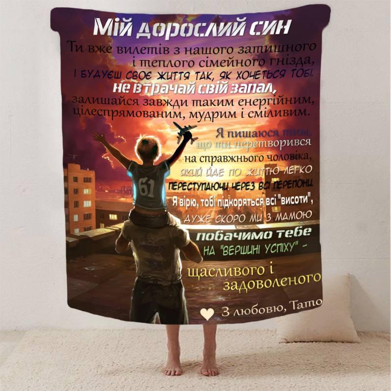 Плед 3D зі своїми побажаннями синові "Обіймі Батьківського Тепла" 2885_A 13230 160х200 см